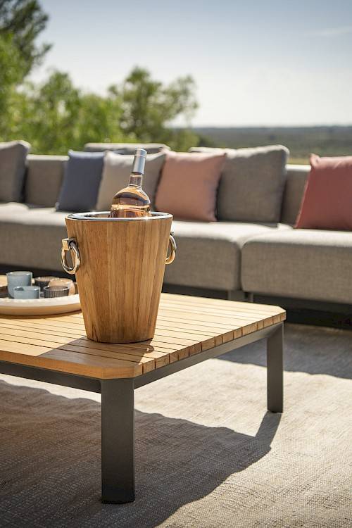 A classic is the Antibes Winetub and -cooler, made of teak and stainless steel parts. A striking design, perfect for making a statement. With these accessories, your favourite wines or bubbles are always within reach.