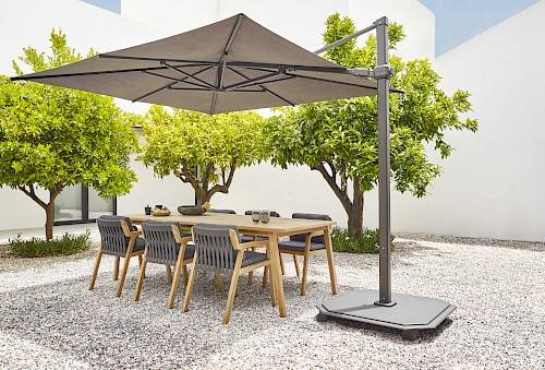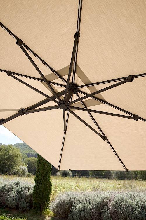 The most iconic series from Caractère. Three Series includes umbrellas that are the heart of your garden, perfect for shelter and protection from the bright sun rays. Every model is extremely convenient to move and operate. By means of the slider, you can easily move this umbrella into every desired position and turn 360° without having to move its base.